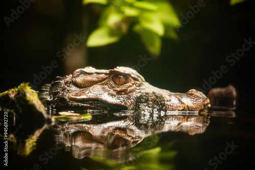 © Vanessa, Obraz premium Caiman lurking partially submerged in water