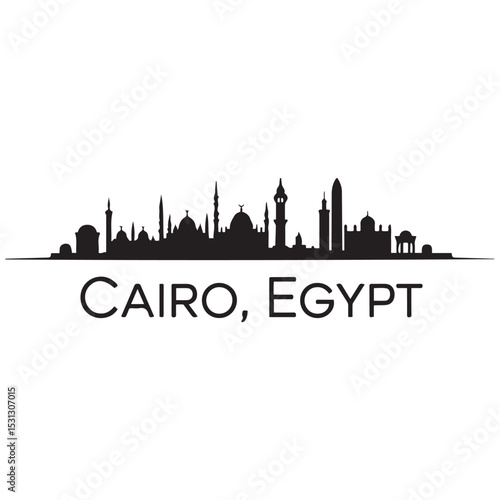 © firoz, Obraz premium Cairo skyline horizontal banner. Cairo, Egypt. Vector template for your design. Vector black silhouette. with white background