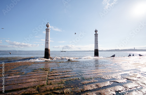 © luengo_ua, Obraz premium Cais das Colunas - ancient river promenade in Lisbon, Portugal.