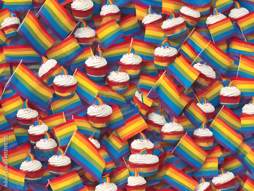 Obraz premium Cake background pattern designed with LGBT pride parade flag, Generative AI