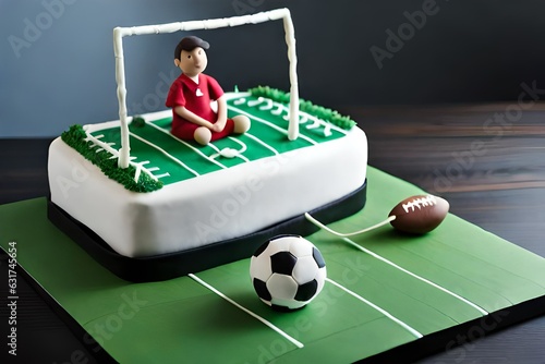 Fototapeta premium CAKE OF FOOTBALL THEME AI GENERATED