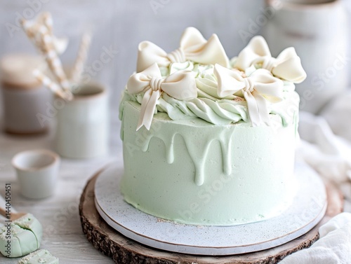 © Aninka, Fototapeta premium Cake with white bows on top of it