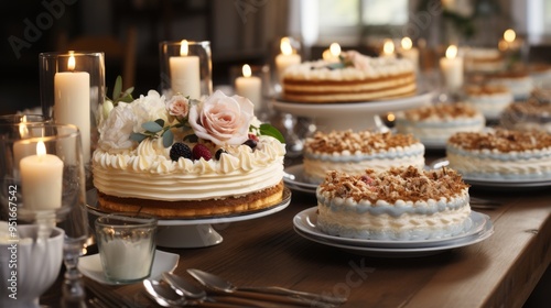 Naklejka premium cakes on banquet table photo