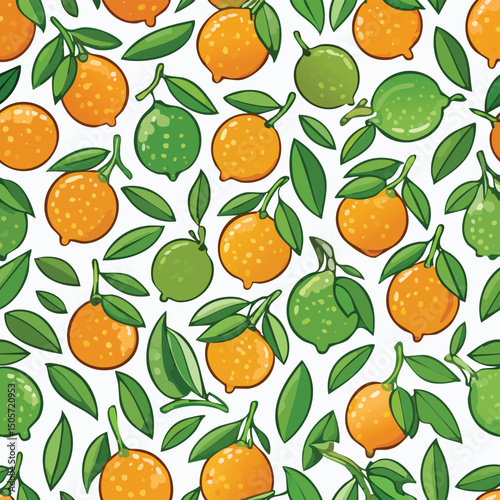 © cloud7days, Obraz premium Calamansi Vector Illustration with Seamless Pattern Design