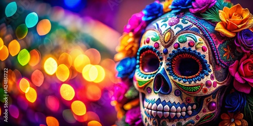 Fototapeta premium Calavera Catrina Sugar Skull Macro Photography: Day of the Dead Festive Details