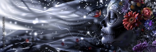Fototapeta premium Calavera, floral, colorful, --ar 3:1 --sref 978 Job ID:...