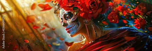 Fototapeta premium Calavera, floral, colorful, --ar 3:1 --sref 906 Job ID:...