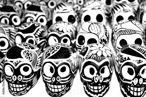 © Clarence, Obraz premium calaveras mexicanas hechas a mano por artistas mexicanos en blanco y negro del mercado de artesanías en San Miguel de Allende México