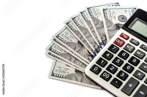 Fototapeta premium calculator and dollars on white background