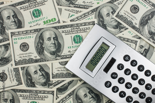 © alekleks, Fototapeta premium Calculator lies on a million dollars