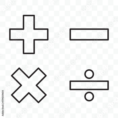 © Ankita, Fototapeta premium Calculator vector key isolated on white background. Addition, subtraction. Mathematical symbols icon. Calculator, math icon. Vector pictogram. Math symbols icon set.