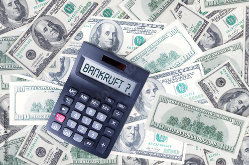 © Creativa Images, Fototapeta premium Calculator with bankrupt word and question mark