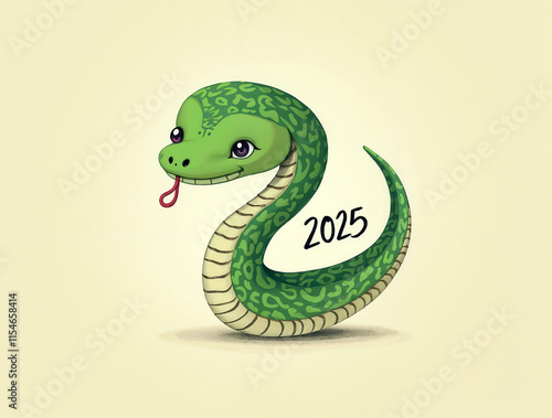 © Ruslan, Naklejka premium calendar cover with cute green drawn snake with the text 2025
