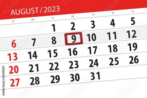 Obraz premium Calendar 2023, deadline, day, month, page, organizer, date, August, wednesday, number 9