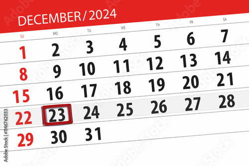 Obraz premium Calendar 2024, deadline, day, month, page, organizer, date, December, monday, number 23