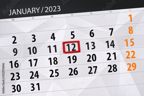 © aleksandrbs, Obraz premium Calendar 2023, deadline, day, month, page, organizer, date, january, thursday, number 12