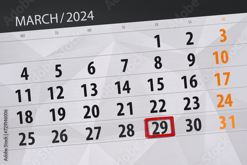 Obraz premium Calendar 2024, deadline, day, month, page, organizer, date, March, friday, number 29