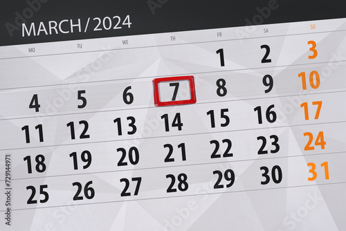 Obraz premium Calendar 2024, deadline, day, month, page, organizer, date, March, thursday, number 7