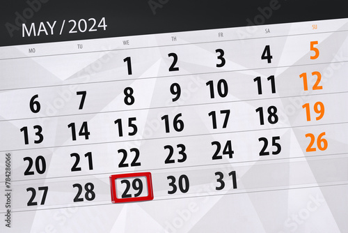 Obraz premium Calendar 2024, deadline, day, month, page, organizer, date, May, wednesday, number 29