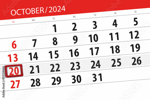 © aleksandrbs, Obraz premium Calendar 2024, deadline, day, month, page, organizer, date, October, sunday, number 20