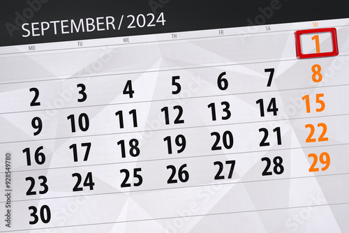 Fototapeta premium Calendar 2024, deadline, day, month, page, organizer, date, September, sunday, number 1