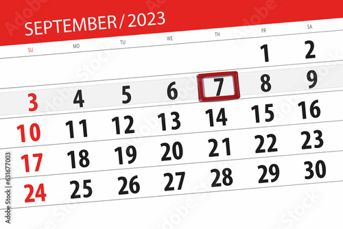 Obraz premium Calendar 2023, deadline, day, month, page, organizer, date, September, thursday, number 7