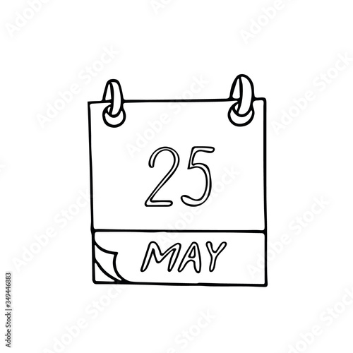 © Ирина Самойлова, Fototapeta premium calendar hand drawn in doodle style. May 25. International Missing Children Day, Towel, World Thyroid, Africa, African Freedom, date. icon, sticker, element