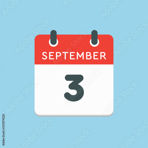 Fototapeta premium Calendar icon day 3 September, template date days
