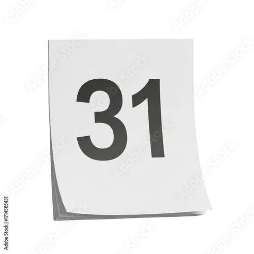 Fototapeta premium Calendar page with number 31 isolated on transparent background