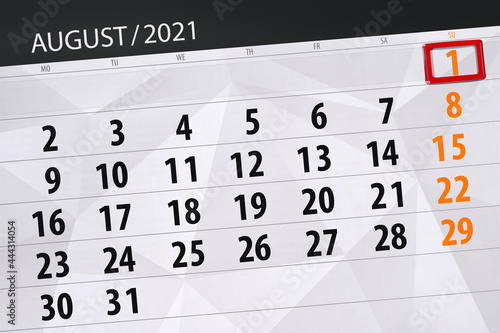 © aleksandrbs, Obraz premium Calendar planner for the month august 2021, deadline day, 1, sunday