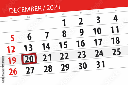 © aleksandrbs, Obraz premium Calendar planner for the month december 2021, deadline day, 20, monday