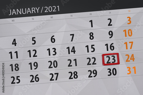 © aleksandrbs, Obraz premium Calendar planner for the month january 2021, deadline day, 23, saturday