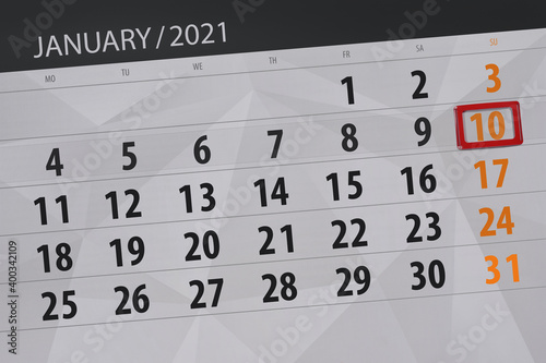 © aleksandrbs, Obraz premium Calendar planner for the month january 2021, deadline day, 10, sunday