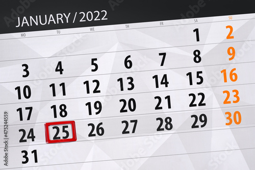 © aleksandrbs, Obraz premium Calendar planner for the month january 2022, deadline day, 25, tuesday