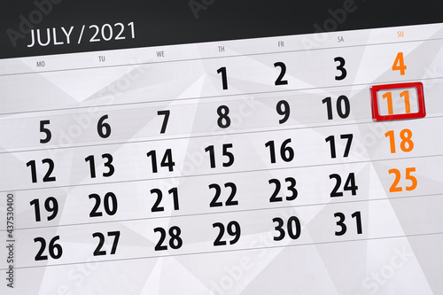 © aleksandrbs, Obraz premium Calendar planner for the month july 2021, deadline day, 11, sunday