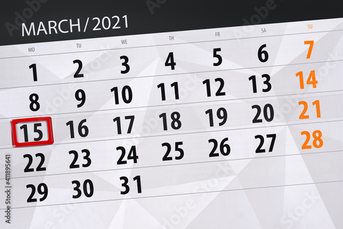 © aleksandrbs, Obraz premium Calendar planner for the month march 2021, deadline day, 15, monday.