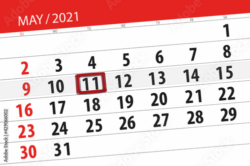 Fototapeta premium Calendar planner for the month may 2021, deadline day, 11, tuesday