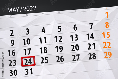 © aleksandrbs, Fototapeta premium Calendar planner for the month may 2022, deadline day, 24, tuesday