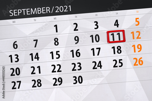© aleksandrbs, Obraz premium Calendar planner for the month september 2021, deadline day, 11, saturday