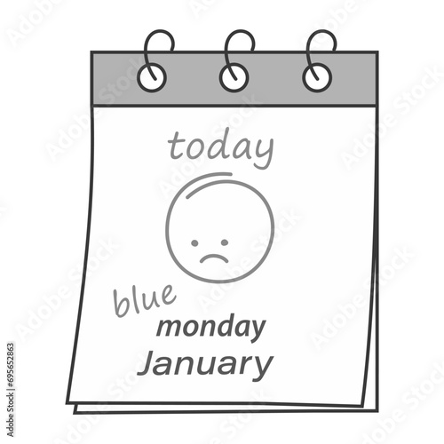 © Nataliya, Fototapeta premium Calendar sheet with the date monday January, lettering and stroke as sad smiley face in grayscale