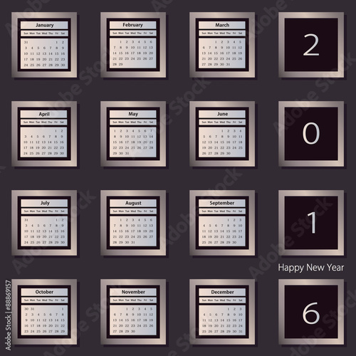 Obraz premium Calendar 2016 vector decign template. Week starts Sunday. Eps 10