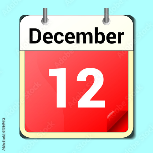 Fototapeta premium calendar vector drawing, date December 12 on the page