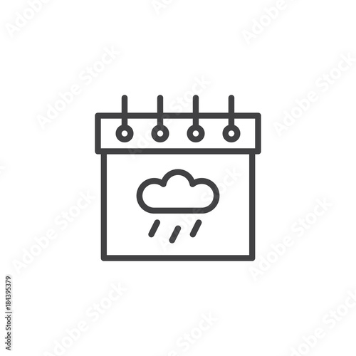 Fototapeta premium Calendar with rainy cloud line icon, outline vector sign, linear style pictogram isolated on white. Autumn season symbol, logo illustration. Editable stroke