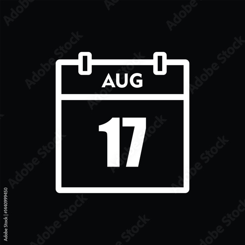 Fototapeta premium calender icon, 17 august icon with black background