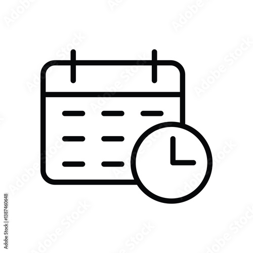 Fototapeta premium Calender with clock icon, scheduling line icon vector