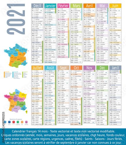 Naklejka premium 2021-Calendrier 14 mois-Carte régions et académies-1
