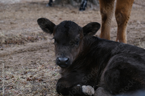 © ccestep8, Fototapeta premium Calf during winter calving season on Texas farm concept closeup.