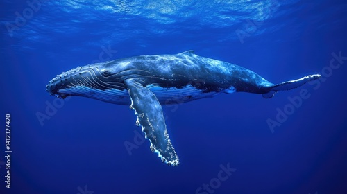 © Lilly, Obraz premium Calf humpback whale swims close underwater, 4k slow motion