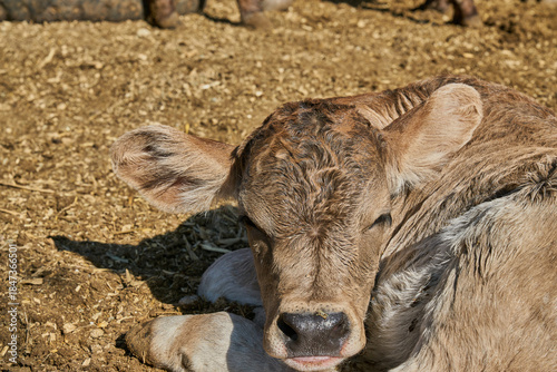 © GERMAN, Fototapeta premium Calf resting with eyes closed