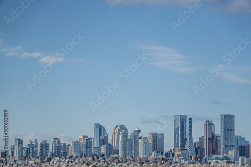 Fototapeta premium Calgary downtown financial district skyline under cloudy skies